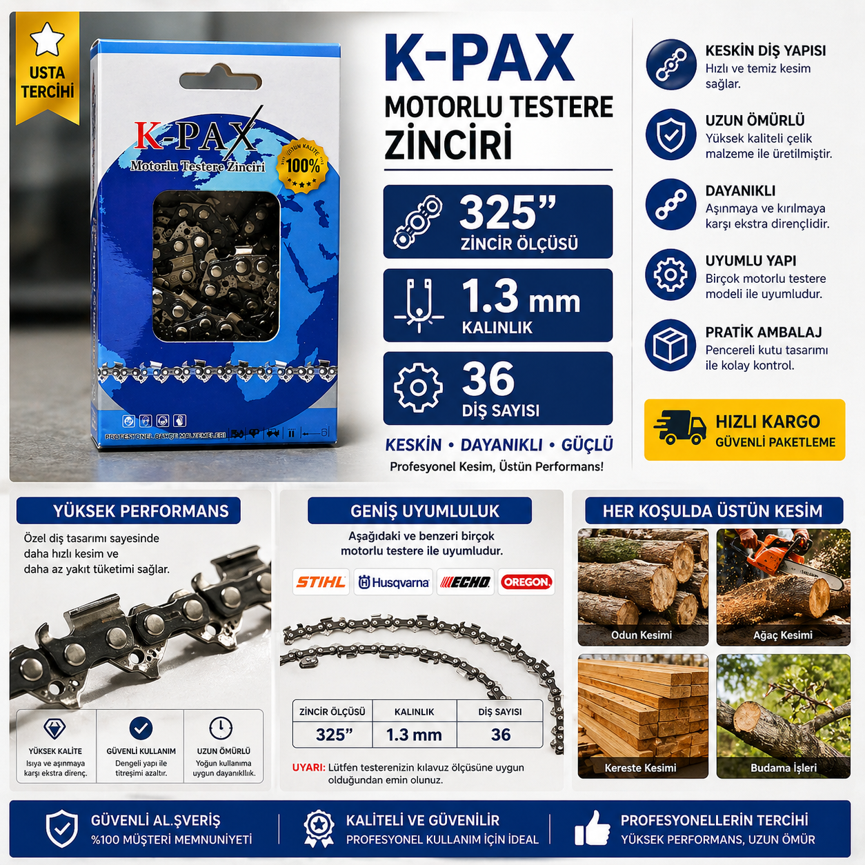 İlk Yorumu Siz Yapın “K-PAX GOLD 325 1.3 36 DİŞ MOTORLU TESTERE ZİNCİRİ”